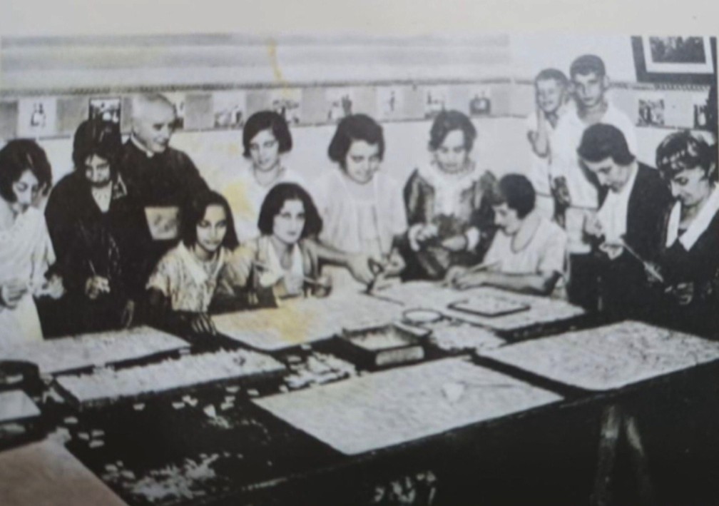 Mulheres faziam os mosaicos de pedra-sabão numa igreja no Largo do Machado — Foto: Reprodução/TV Globo