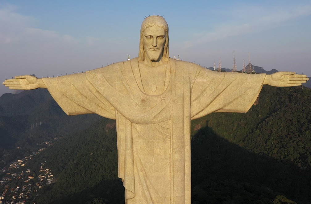 ‘Coroa de espinhos’ na cabeça do Cristo é um para-raio; sistema se espalha pelos braços — Foto: g1