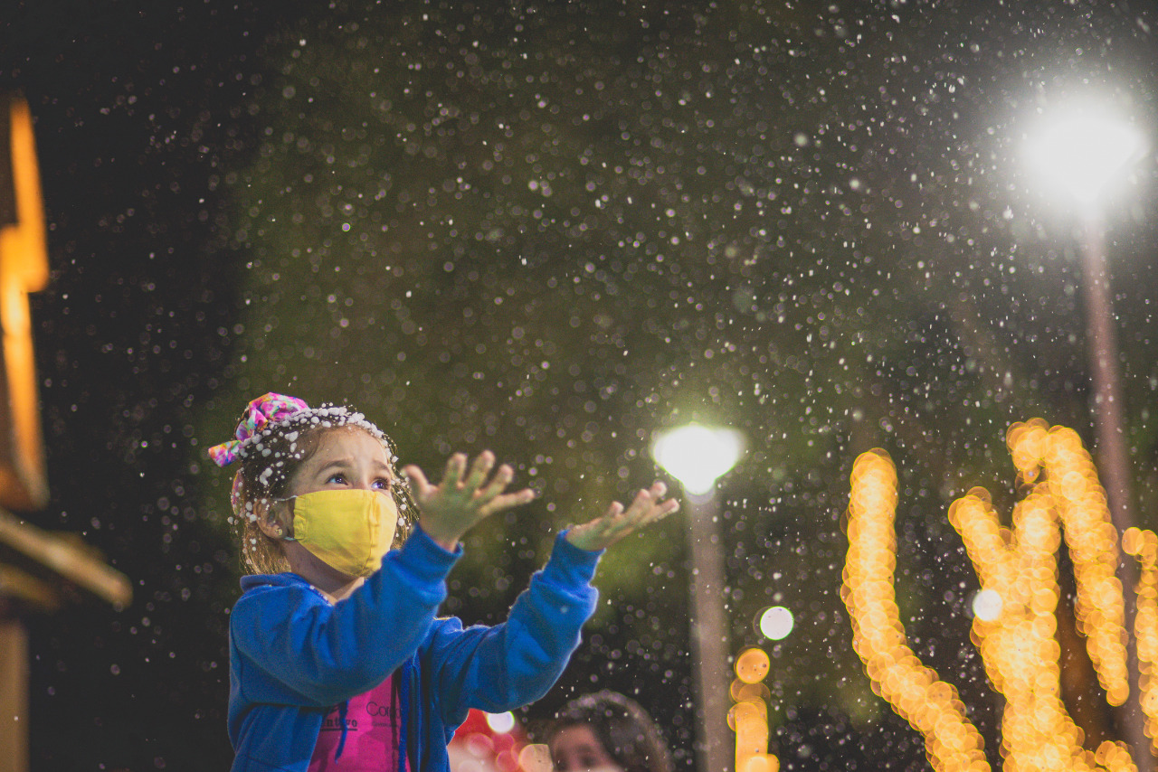 E quem está ansioso ou curioso para ver nevar em Biguaçu, pode vir até a Praça Nereu Ramos de segunda-feira a domingo, a partir das 19h, para conferir.